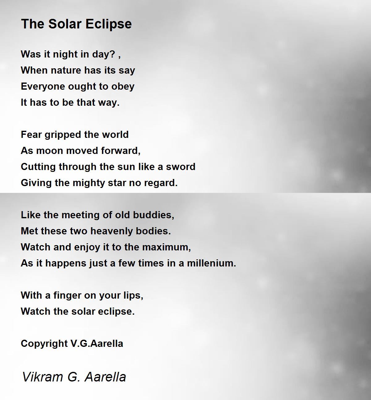 April 8 2024 Eclipse Of The Sun Poem Lyrics. April's eclipse is about to shake things up, but if it helps you break free from. Mountain time, cross the united states, and exit through.